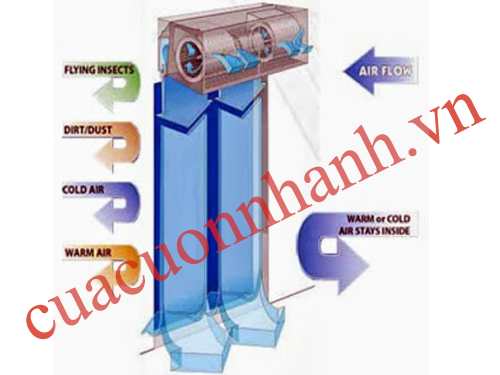 Quạt chắn gió là một giải pháp đơn giản nhưng rất hiệu quả bằng cách tạo ra một màn gió ngay tại cửa ra vào tạo lối đi thông thoáng, thuận lợi, giúp tiết kiệm tối đa chi phí năng lượng, ngăn bụi khói, côn trùng, ngăn thất thoát hơi lạnh và tạo một môi trường không khí trong lành.